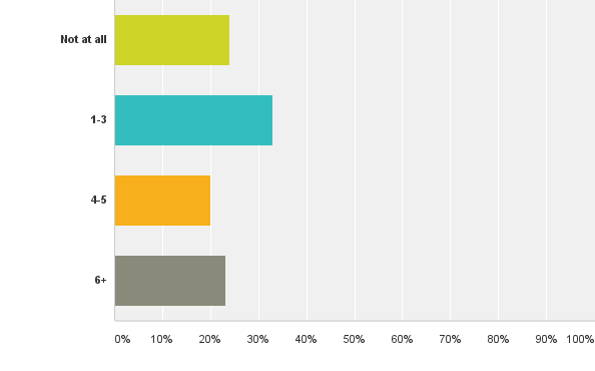 The amount of workload means that around 23% had worked through their lunch breaks 6 times or more in the last two weeks. 20% had worked through their lunch breaks between 3-5 times in the same period.