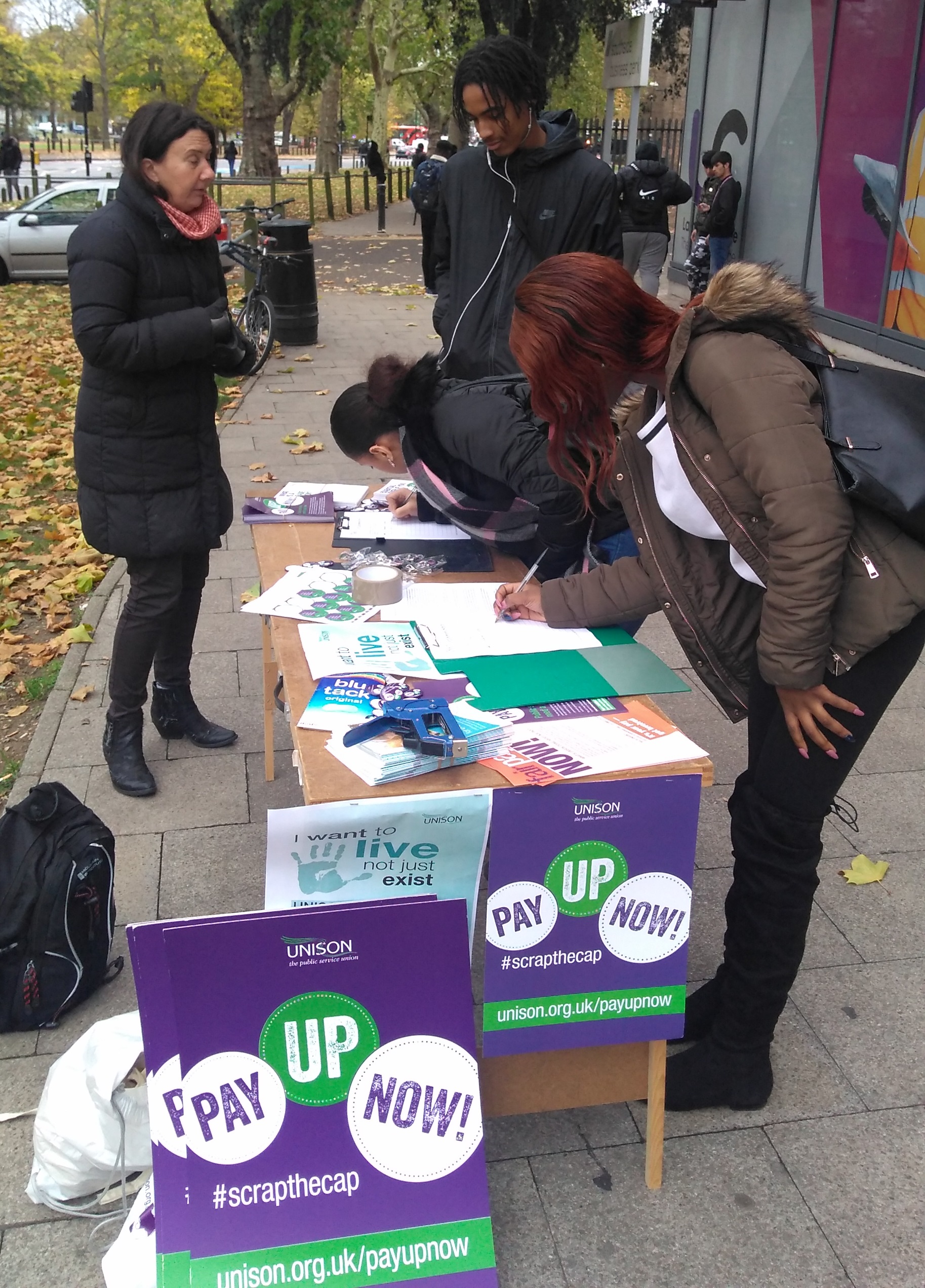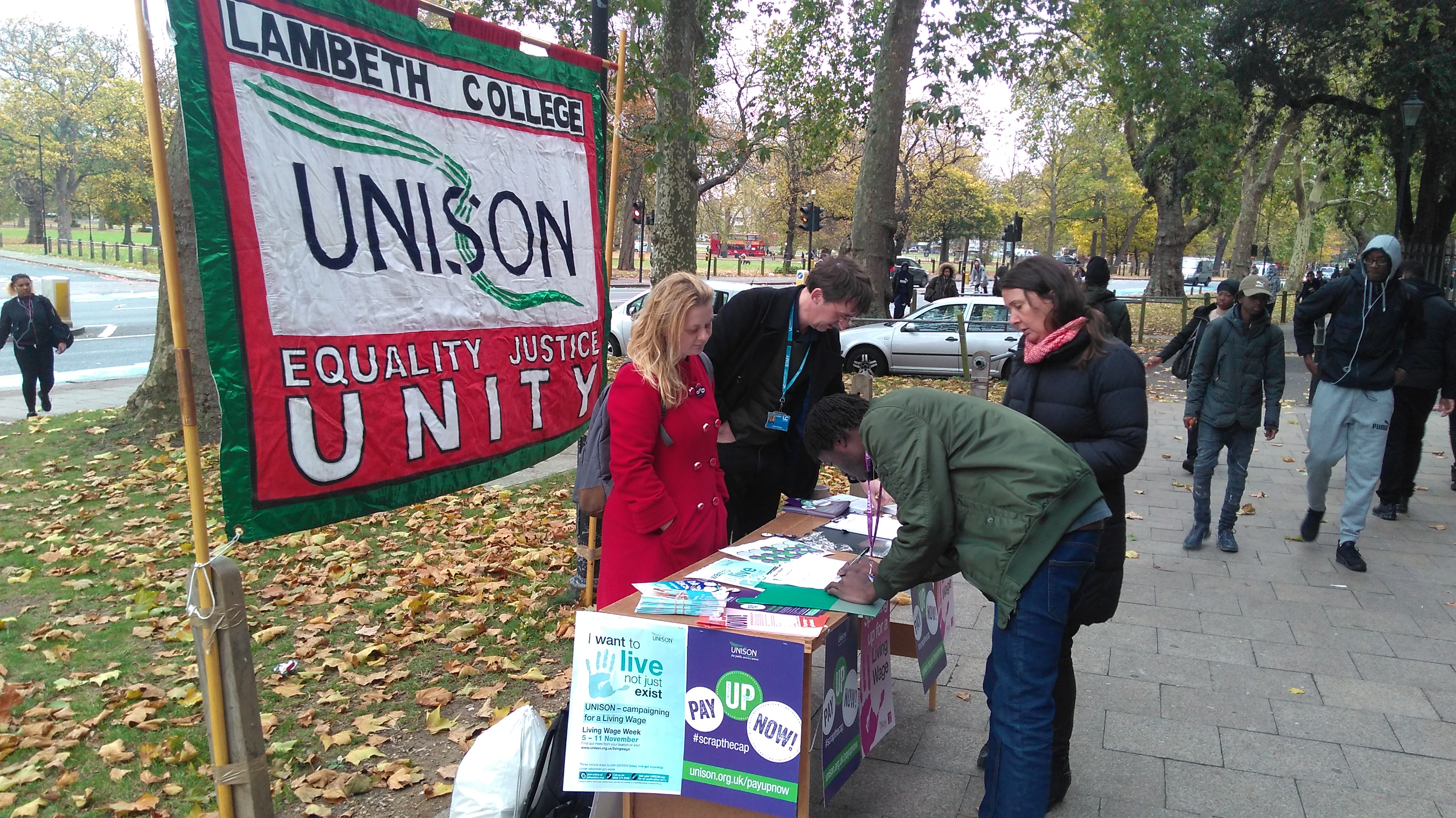 UNISON activists were out at Lambeth College today with a petition for the cleaning, security and catering staff to earn the new London Living Wage of £10.20 an hour.