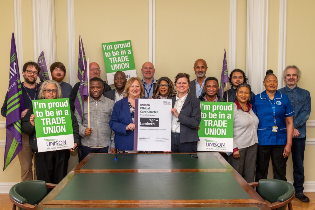 Lambeth Council senior leaders signed up to the UNISON ethical care charter on 18 March.