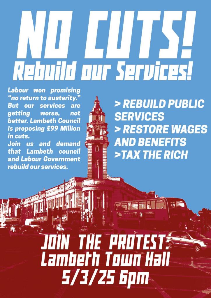 If you live or work in Lambeth and want to fight for a better borough with fully funded and expanded services then please get in touch LambethSolidarity@gmx.com